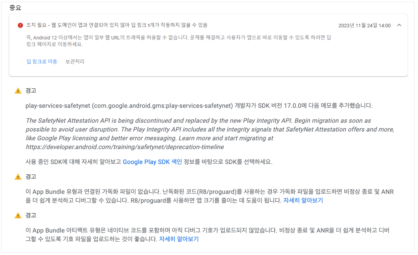 12. 앱 게시 후 무시해도 좋은 오류 메세지