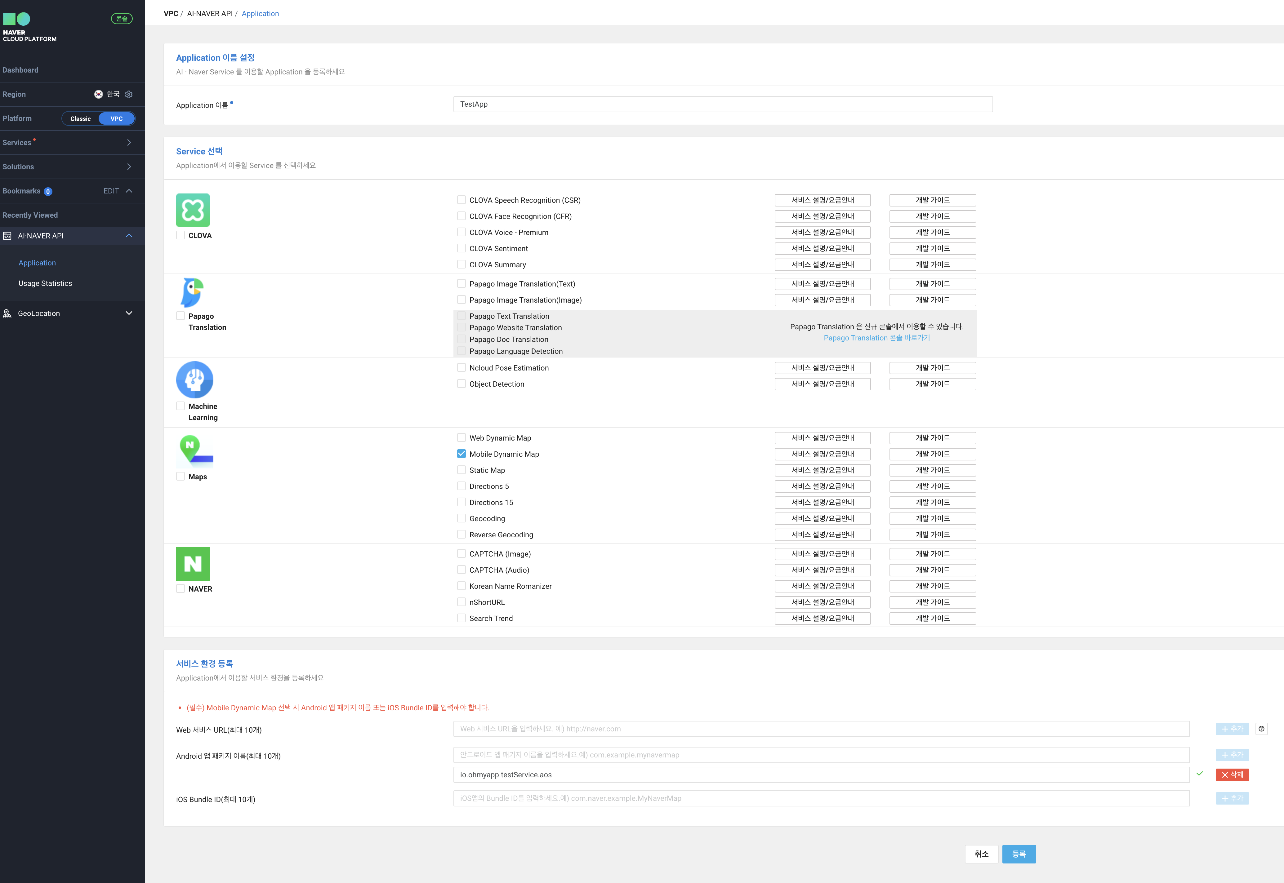 > \#네이버 클라우드(지도 API) 연동, #네이버 클라이언트 키 항목