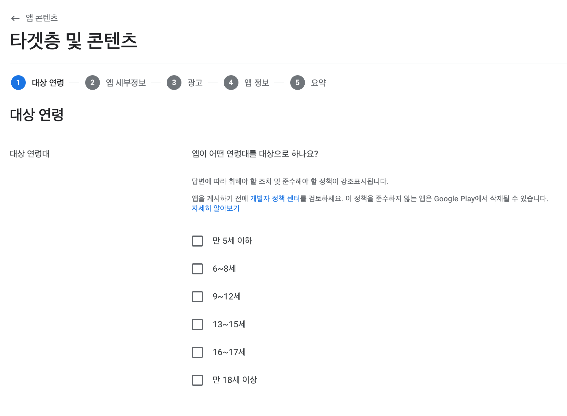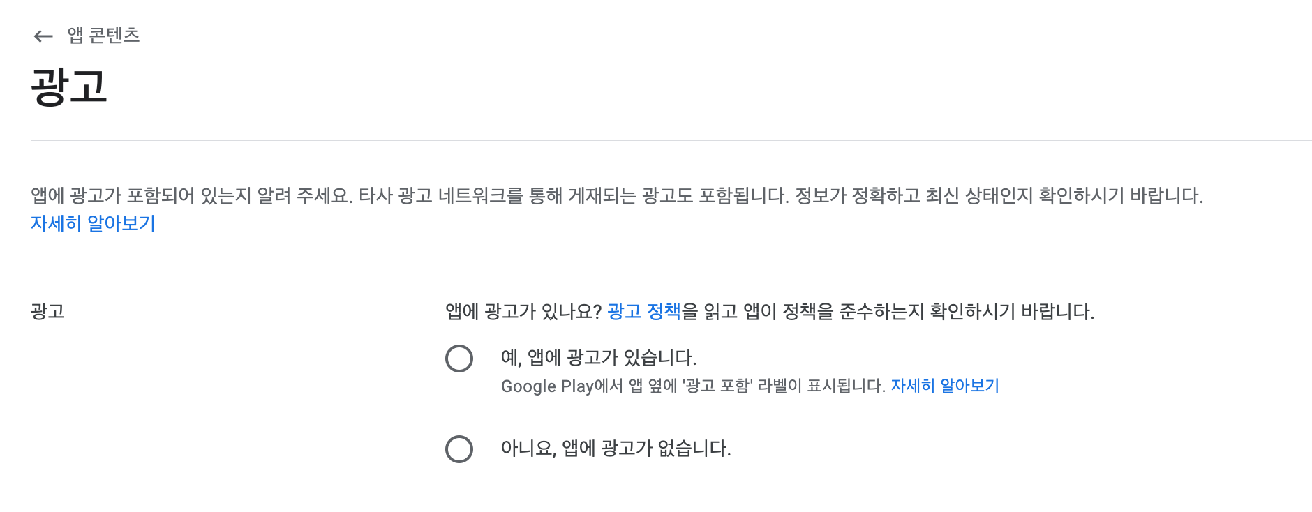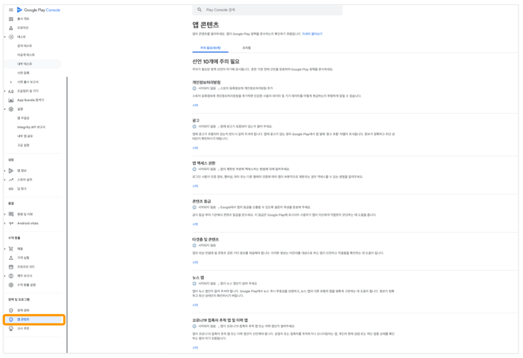 ## 앱 콘텐츠 설정