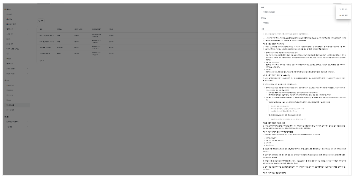 2. 관리자 웹 ➡︎ 좌측 메뉴바 ➡︎ 운영 ➡︎ 약관 관리 ➡︎ 개인정보 처리 방침으로 이동해 주세요.