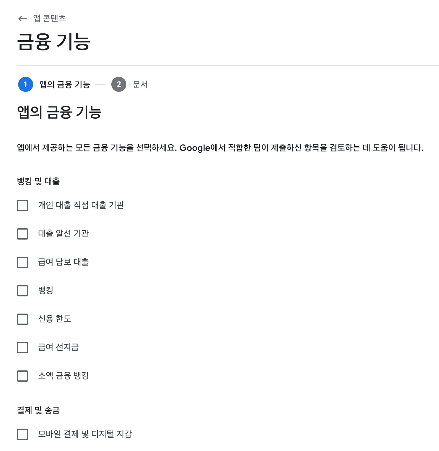 12. 금융 시작 버튼을 눌러 앱에 맞는 항목을 체크 후 저장해 주세요.
