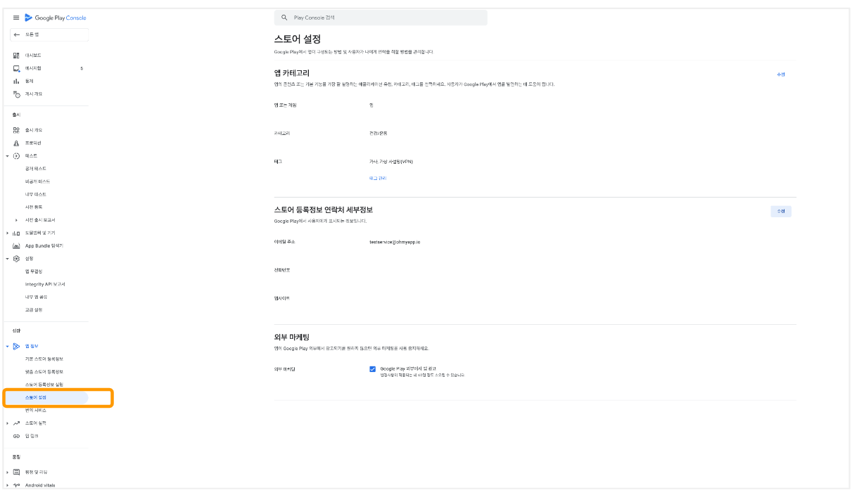 > \#앱 정보 설정, #스토어 설정, #기본 스토어 등록정보, #앱 콘텐츠 설정, #개인정보 처리 방침