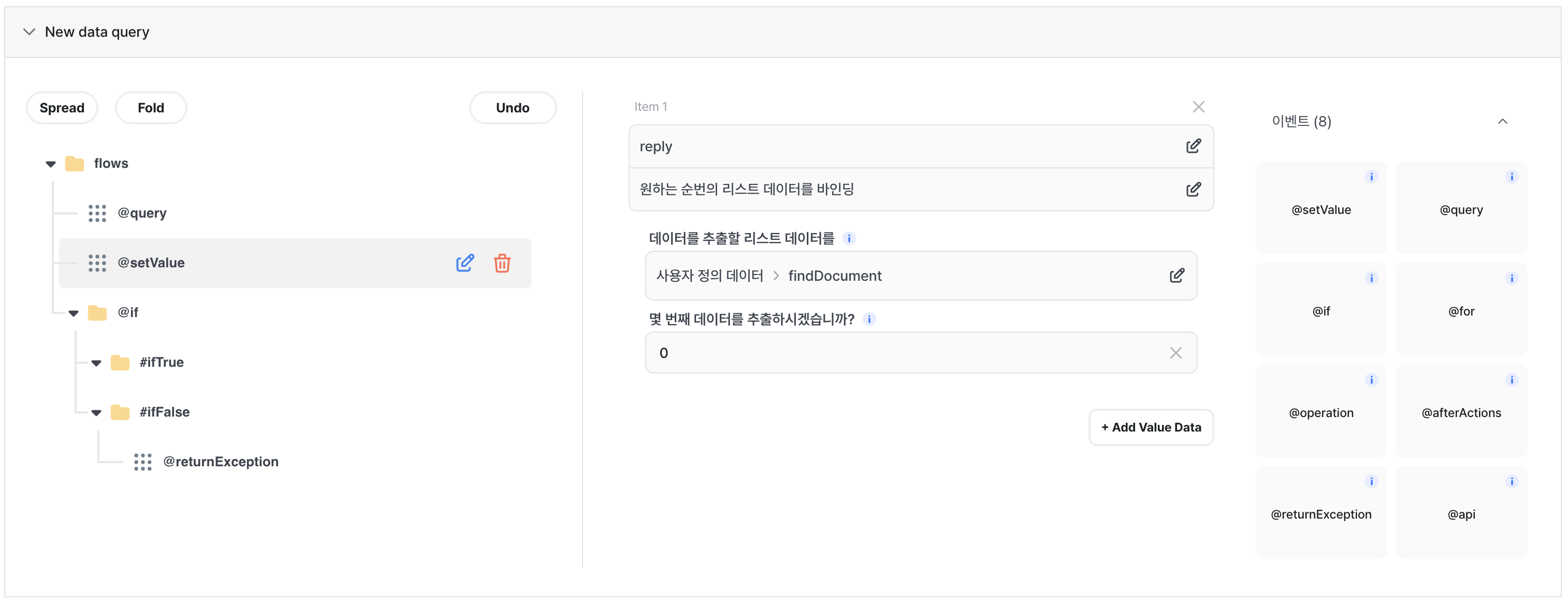 * **setValue** *(해설 : query로 가져온 데이터의 첫 번째를 reply라는 키 값에 정의)*